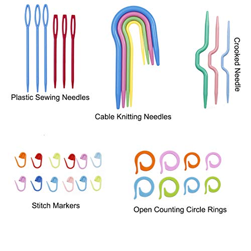 ▲91 Pcs Knitting Accessories — The crochet tool set include stitch markers, stitch ring marker, plastic locking stitch marker, cable stitch holders, yarn needles, etc. Knitting accessories have everything you need to get crocheting tools.